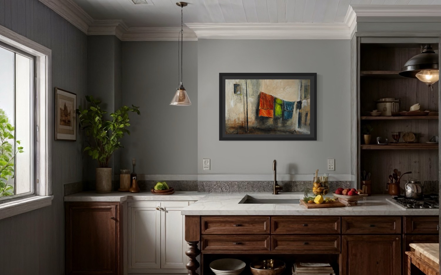 Marina Emphietzi’s Washing Line series invites us to consider where we have been and what we carry with us. Each item on the line seems to hold a story, a memory gently swaying in the breeze: